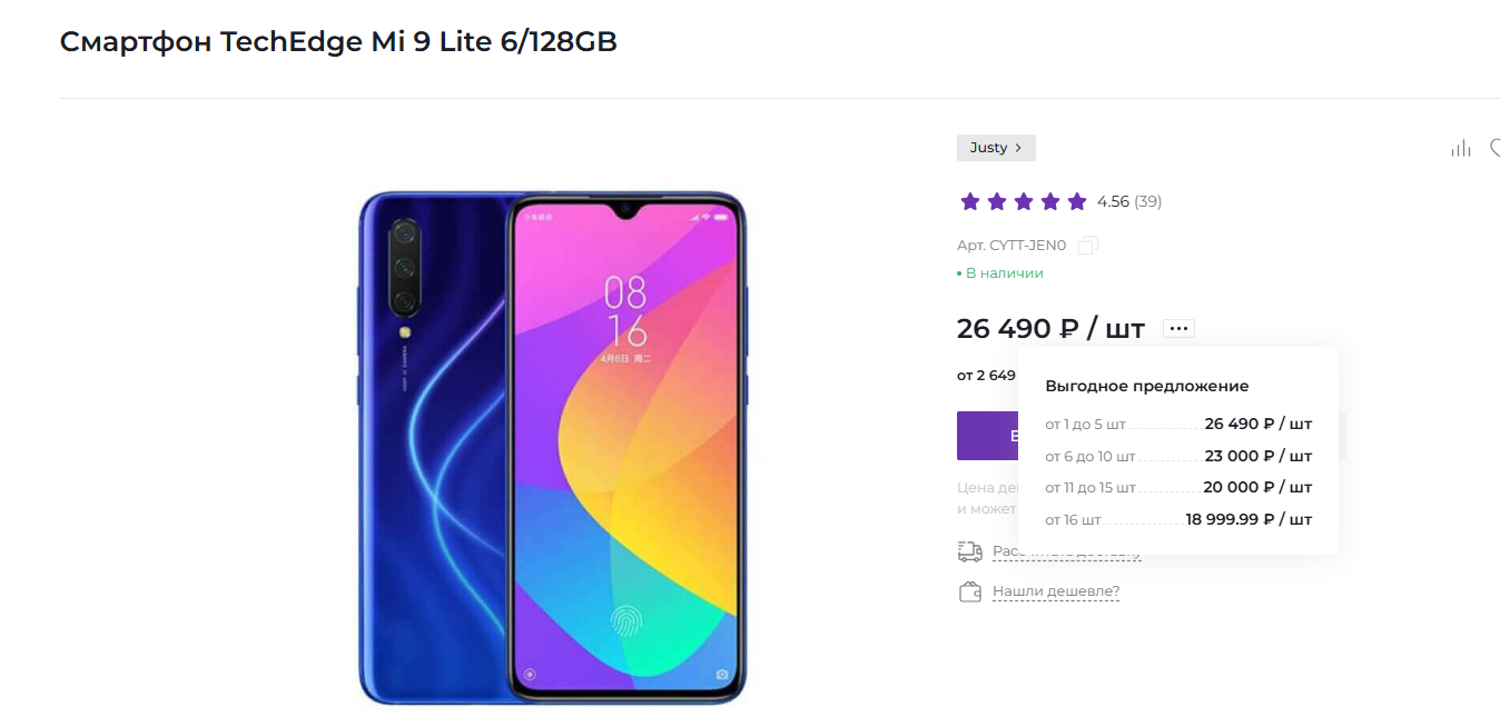 После указания данных значений, у товара отобразится кнопка для показа диапазона цен: