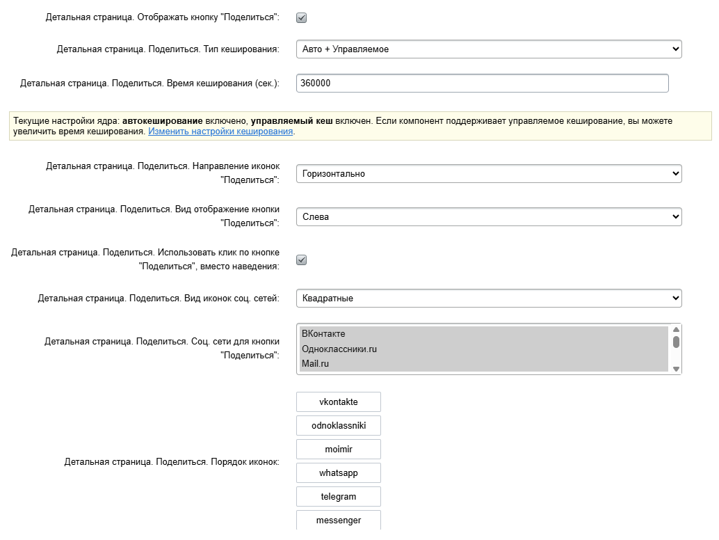 Настройках детального просмотра" можно настроить страницу статьи блога. Здесь можно настроить вывод похожих статей, сопутствующих услуг и товаров, якорное оглавление, кнопку "Поделиться в соц. сетях", отображение даты публикации, количества просмотров, настроить заголовок.