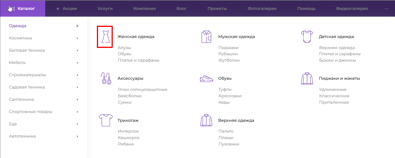 Добавление иконок категориям каталога в меню - Решение KOSMOS