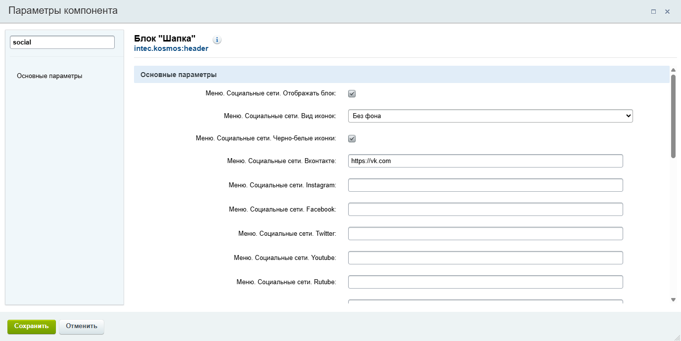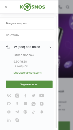 Настройка иконок социальных сетей в меню мобильной шапки - Решение KOSMOS