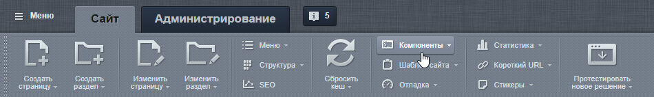 В публичной части сайта, нажать на кнопку "Компоненты" в панели управления:
