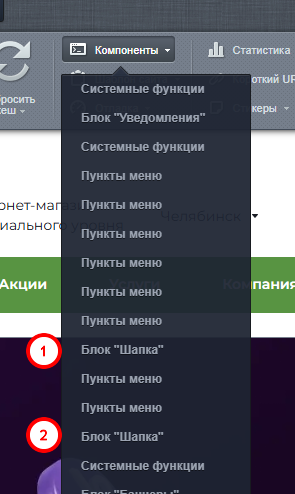 В выпадающем списке выбрать один из компонентов Блок "Шапка":