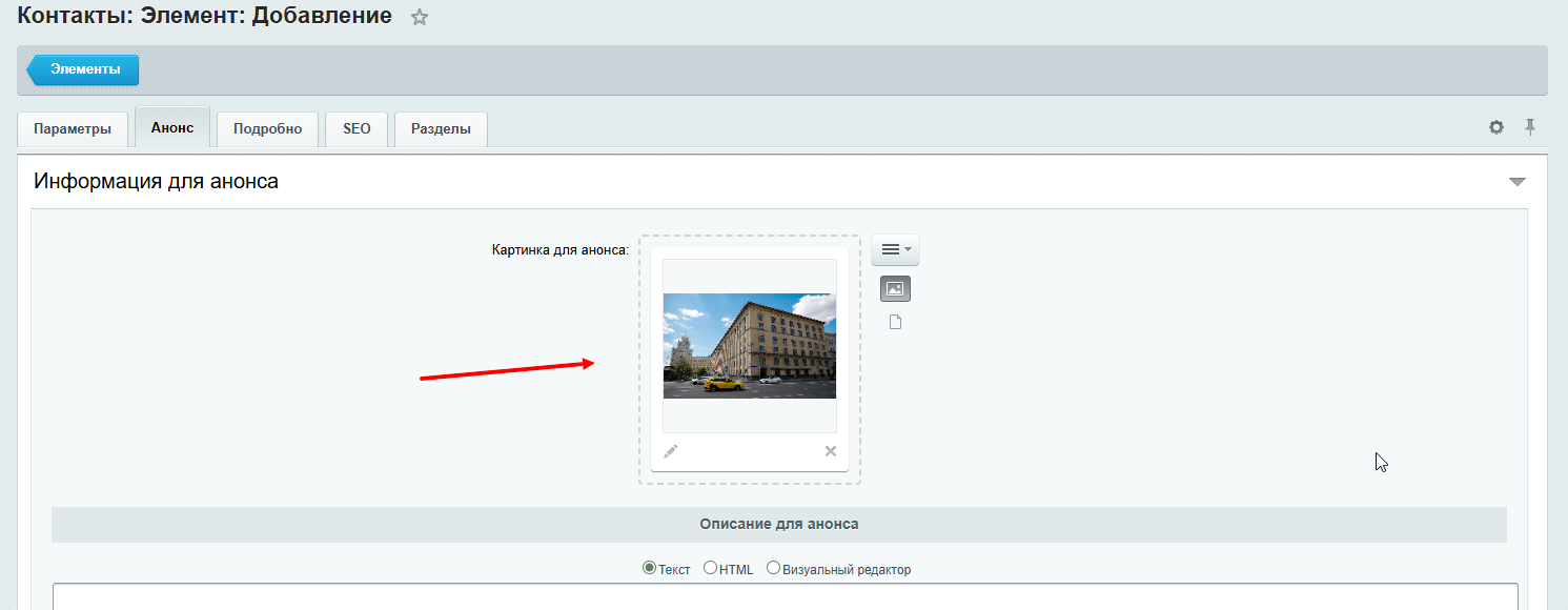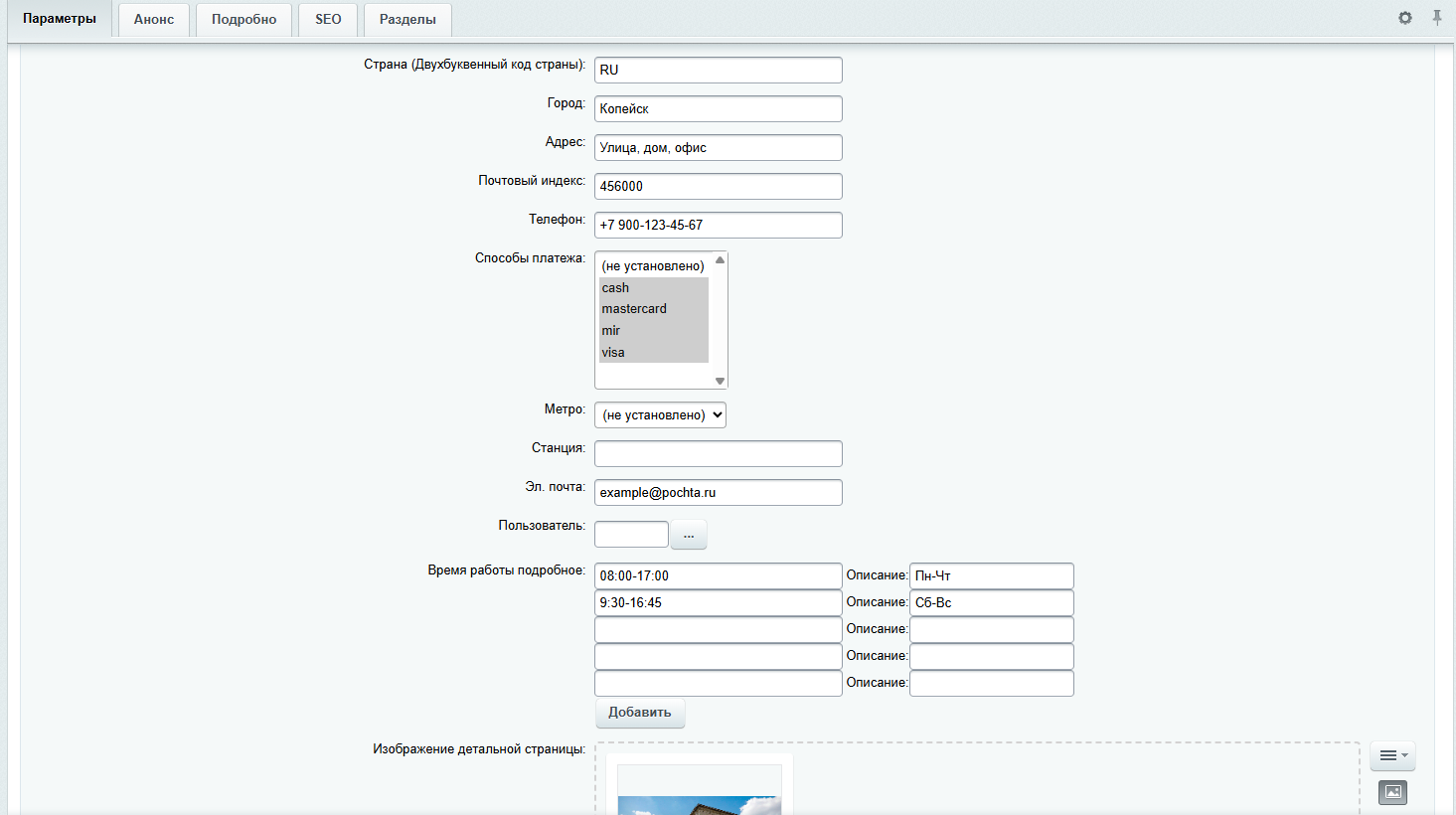 Также во вкладке "Анонс" и "Подробно" можно добавить изображение магазина.