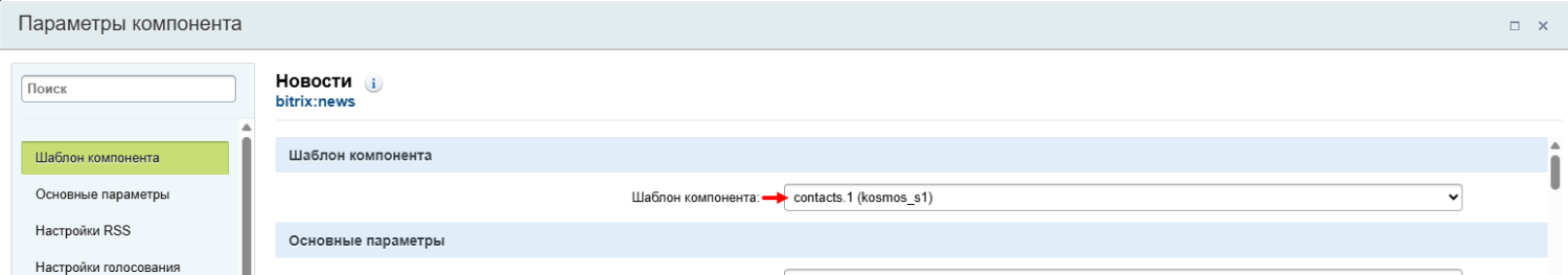 Затем выберем инфоблок, из которого будут тянуться контакты и укажем количество элементов для отображения. Также не забываем про "Глобальные настройки": если галочка отмечена, то настройки компонента будут производиться с помощью синей шестеренки.