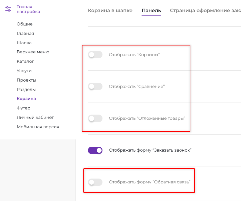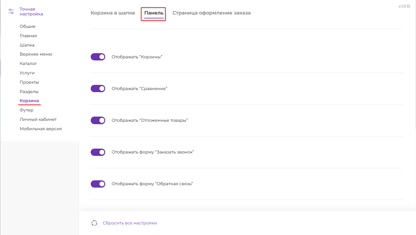 Параметры на данной вкладке отвечают за отображение кнопок на боковой панели и панели в целом: