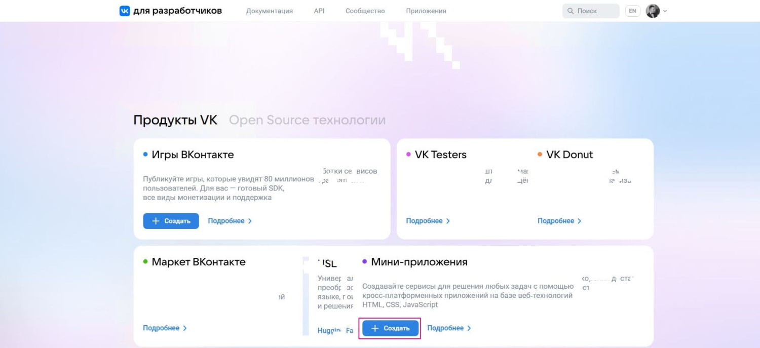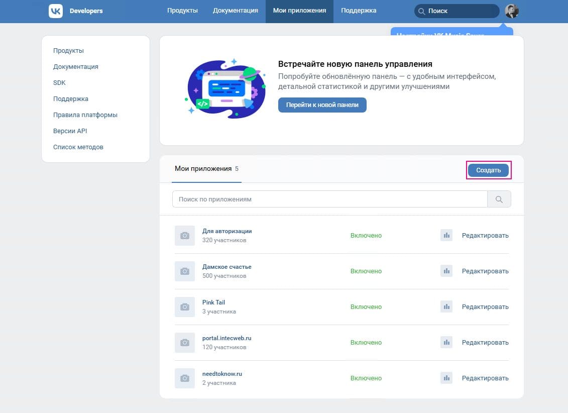 Этап 2. Создание приложения ВКонтакте