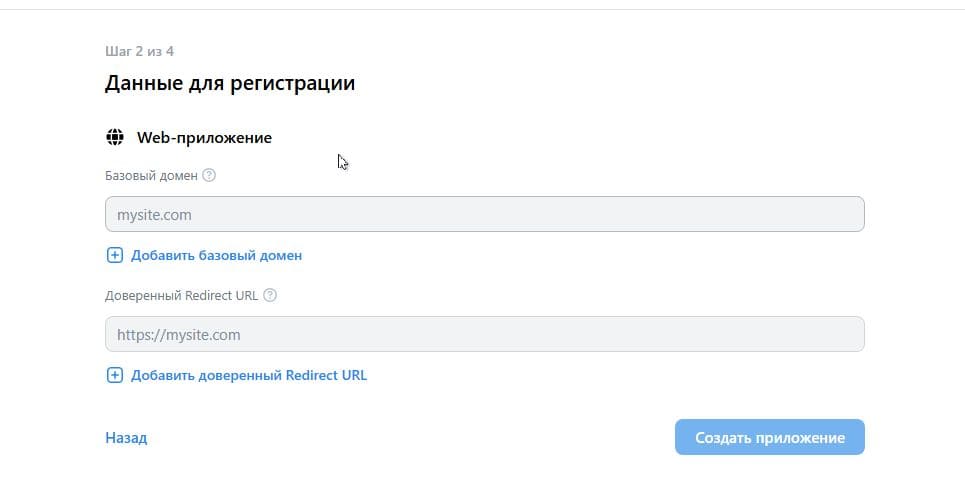 - В поле Доверенный redirect URL укажите URL вида: